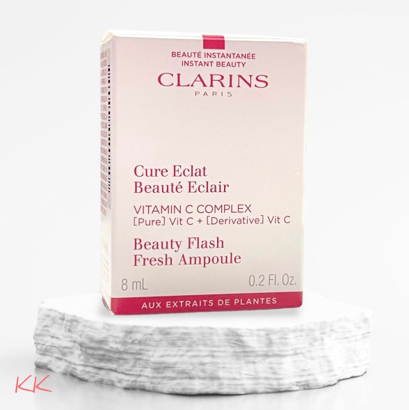 Clarins hat sich für die saure Ascorbinsäure, und damit eine sehr wirkungsvolle Form entschieden, zusammen mit einem anderen Vitamin C Derivat (INCI: Ascorbyl Glucoside), das man auch von The Ordinary kennt, ebenfalls wirkungsvoll aber reizärmer ist. Insgesamt ist das dann ein Vitamin C Gehalt von 15% – recht ordentlich.