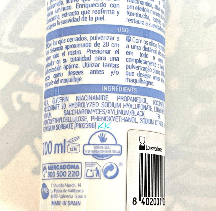 Wer das umgehen möchte, und trotzdem ein Spray haben will, das Glycerin, Niacinamid (war ja klar), Hyaluron, Antioxidantien, fermentierte Zuckerhefe, allerdings auch ein klein wenig Parfüm enthält, also deutlich hochwertiger als Wasser und Glycerin, bekommt für 3 Euro im spanischen Mercadona (Supermarkt) ein tolles (!) Produkt gleicher Art. So billig kann man sich das kaum selbst machen, und das Spray ist eher ein Serum! Und es ist konserviert, wird also nicht so schnell unmerklich ranzig und verkeimt.