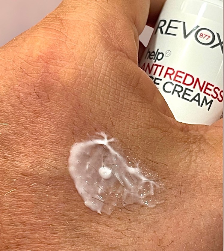 Ich hatte aber noch einen Spender einer Creme im Schrank, die mit signalroten Lettern erklärt wozu sie da ist: ANTI REDNESS Face Cream von REVOX b77.