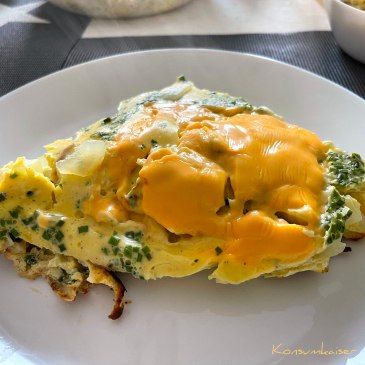 Heute gibt es ein kohlehydratarmes, aber proteinreiches Omelett, das einer spanischen Tortilla ähnelt. Doch typisch KK, ist es deutlich schneller und einfacher zuzubereiten, und man fällt in kein ewiges Fresskoma, weil die typischen Kartoffeln fehlen. Trotzdem lecker!
