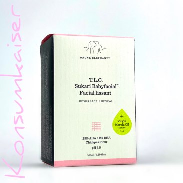 Ja, ich habe mir das sagenumwobene „Babyfacial“ Peeling der US-Kultmarke Drunk Elephant gekauft, der Rabatt war zu verführerisch. Da kann ich dann auch sogleich einmal meine ersten Eindrücke schildern, und die sind eher durchwachsen…