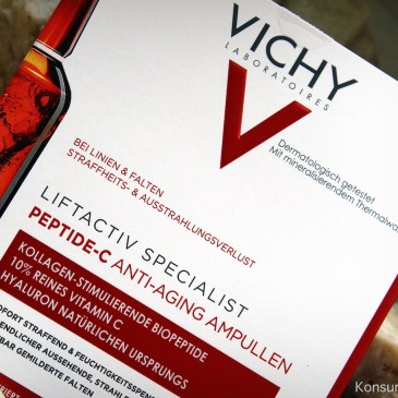 Vichy kommt wieder mit einem Vitamin C Konzentrat auf den Markt. Diesmal in Ampullenform, und ziemlich minimalistisch formuliert. Obwohl ich derzeit gar nicht so sehr auf Vitamin C Seren abfahre, musste ich mir die Peptide-C Anti-Aging Ampullen dann doch mal ansehen…